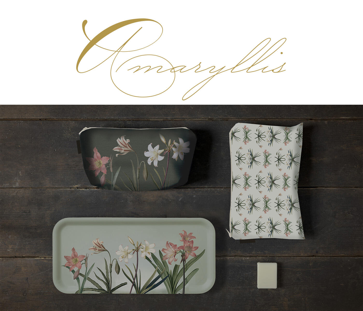 Vinterens smukke blomst Amaryllis med sin ranke stilk og tragtformede blomst spiller hovedrollen i denne elegante kollektion.