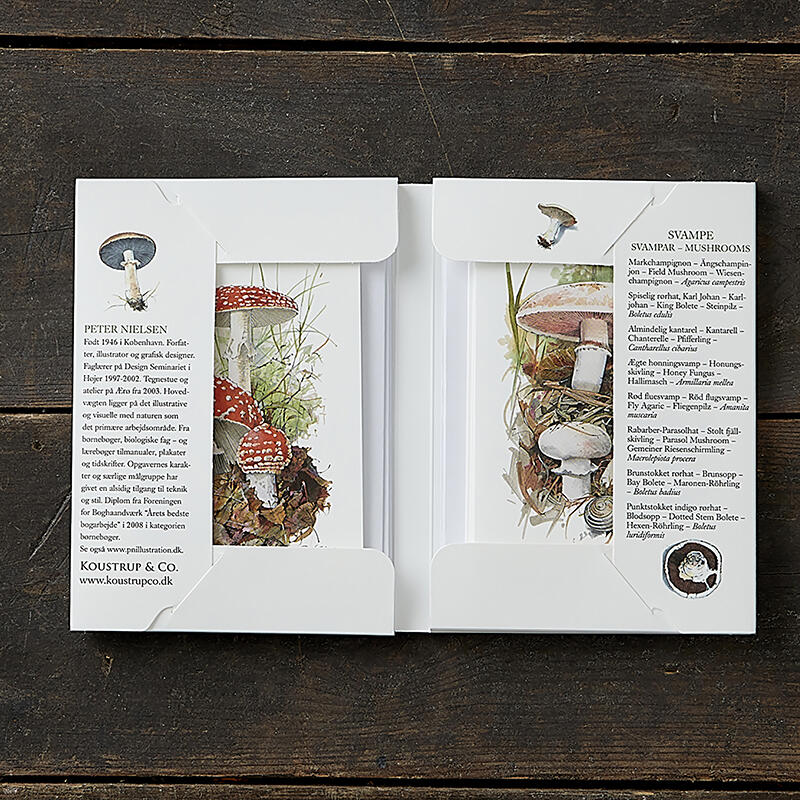 Qualitätskarten mit Pilzmotiven, illustriert von Peter Nielsen.