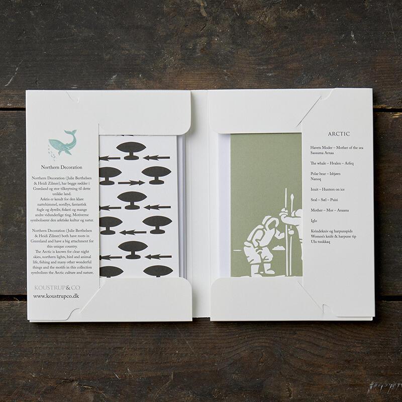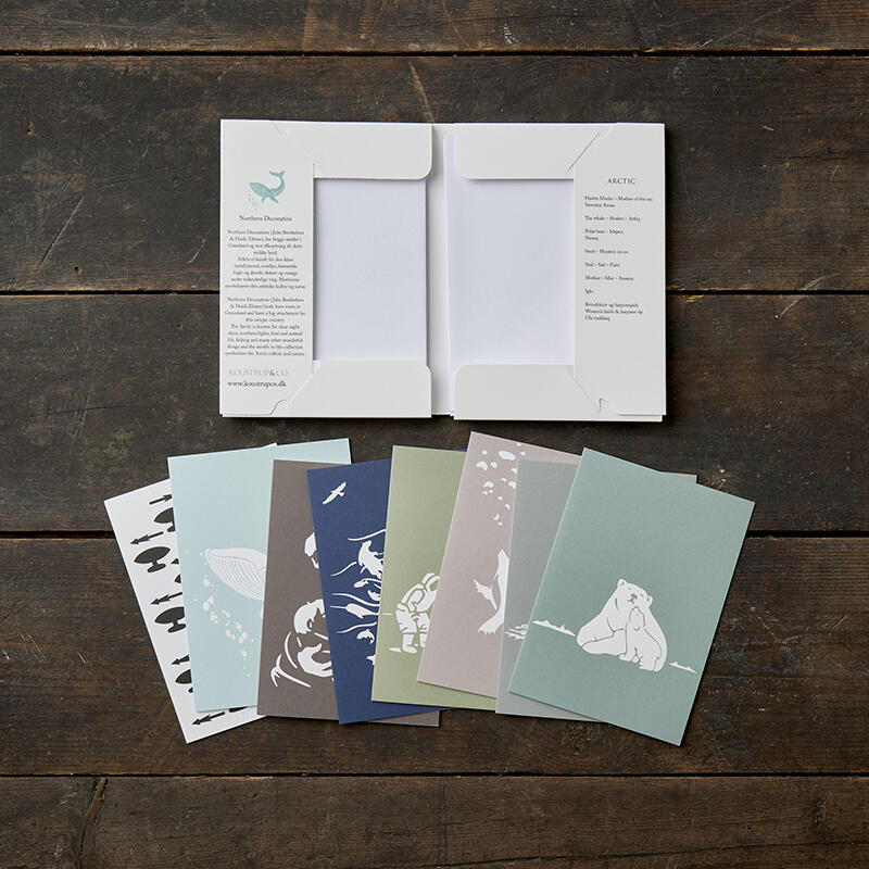 Northern Decoration has expanded its product range with this card folder, which contains eight double cards with various Greenlandic motifs. The card folder includes motifs such as mother of the sea, nanoq with child, anaana, ulu tuukkaq among others.