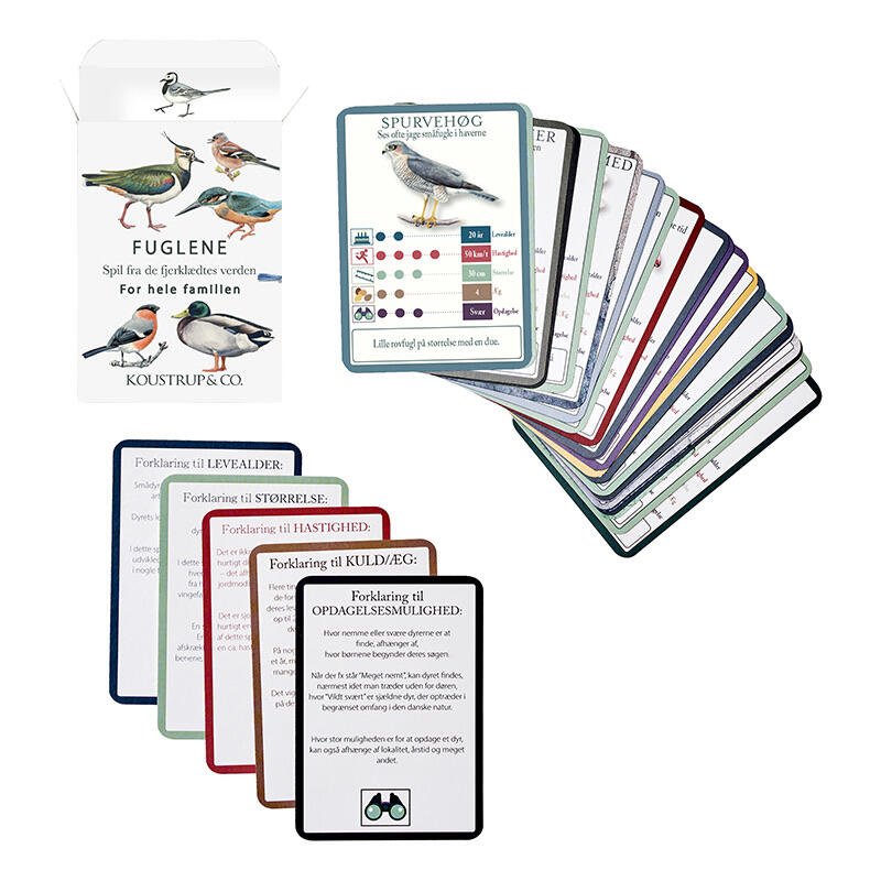 PLAY YOUR WAY TO KNOWLEDGE! With this new card game, idea by Kenneth Lenander and illustrations by Jon Fjeldsaå, you'll learn more about the birds you often see in the garden, in the city, in the forest, by the lake or along the beach. All cards have easy-to-read icons and dots, so children as young as three can compete against each other without adult help. The cards' fun facts make the game interesting for both kids and adults and can be enjoyed by every member of the family.