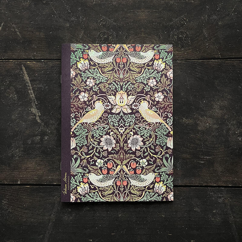 Beautiful notebook with an original William Morris design featuring lovely birds and strawberries.