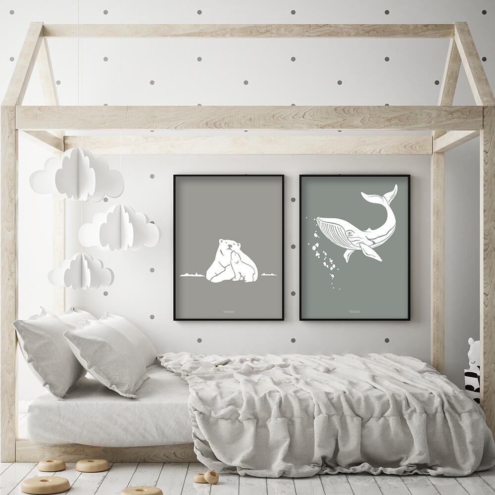 Affiche graphique d'inspiration groenlandaise aux tons bleus et blancs.