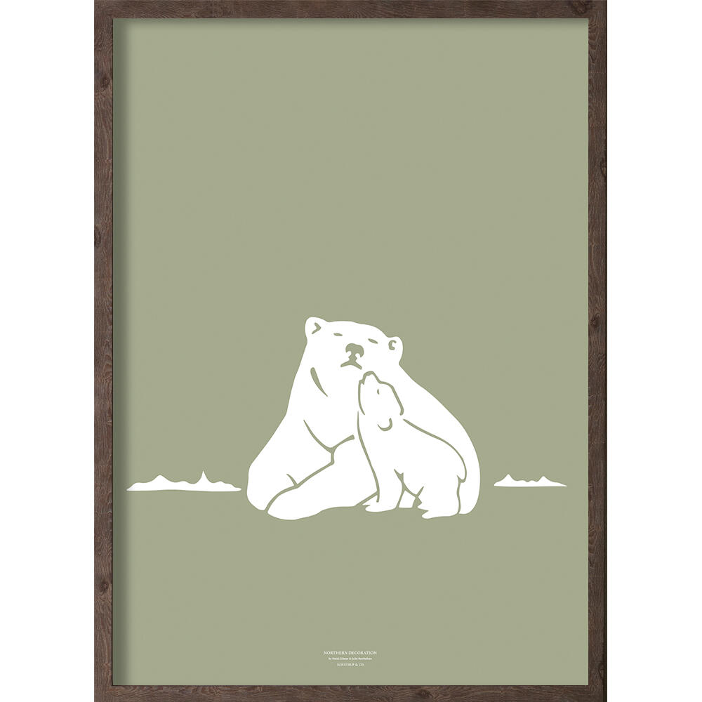 Affiche graphique d'inspiration groenlandaise aux tons vert mousse et blanc.