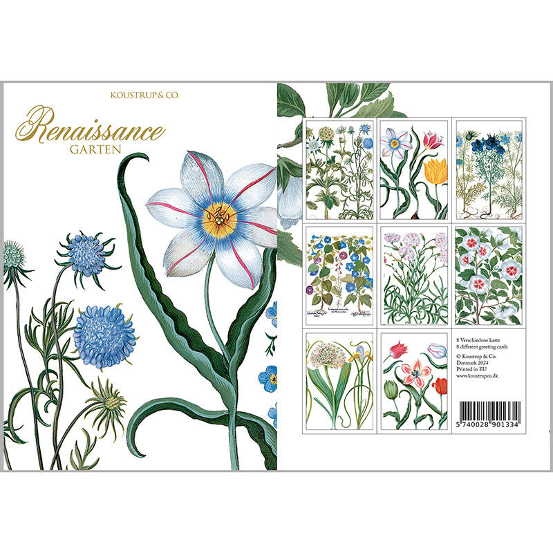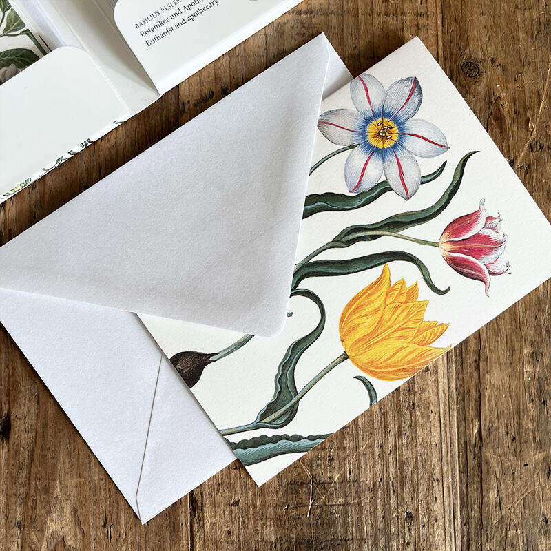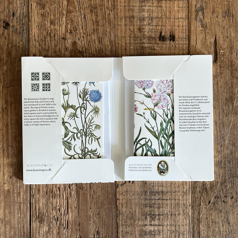Pochette de cartes avec des motifs de la Renaissance illustrés par le natif d'Allemagne Basilius Besler, botaniste et apothicaire expérimenté.