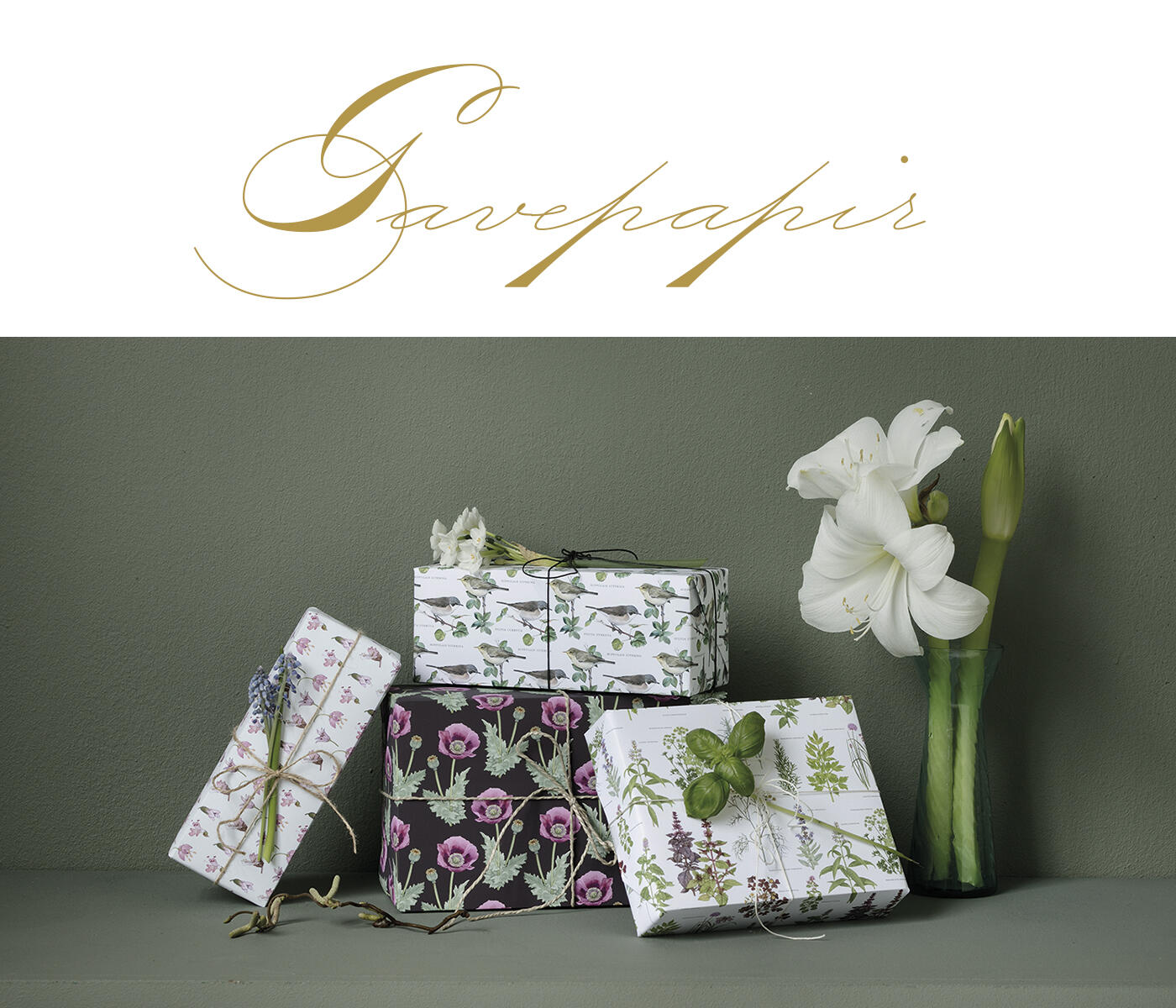 Det er ikke kun indholdet der tæller men også den fine indpakning, som er førstehåndsindtrykket. Gavepapiret leveres i ruller af 4 forskellige ark á 60x100 cm. Gavepapiret er fremstillet af genbrugt FSC papir.