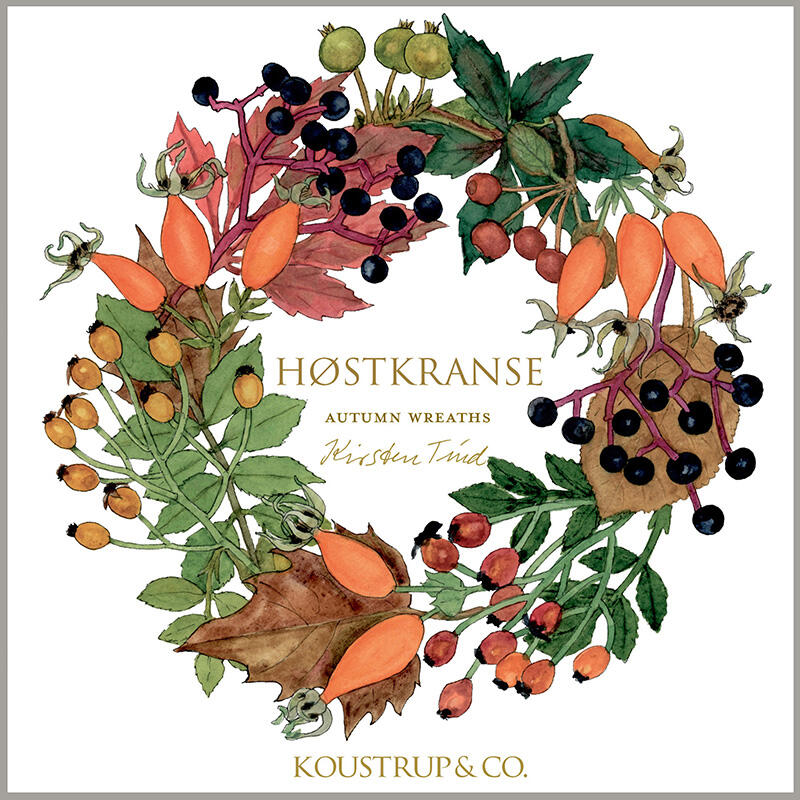 Efteråret gyldne farver og skønne planter er illustreret i denne kortmappe med moderne og elegante efterårskranse, som på smuk vis har sammensat farver og former, der giver en unik krans hver især.