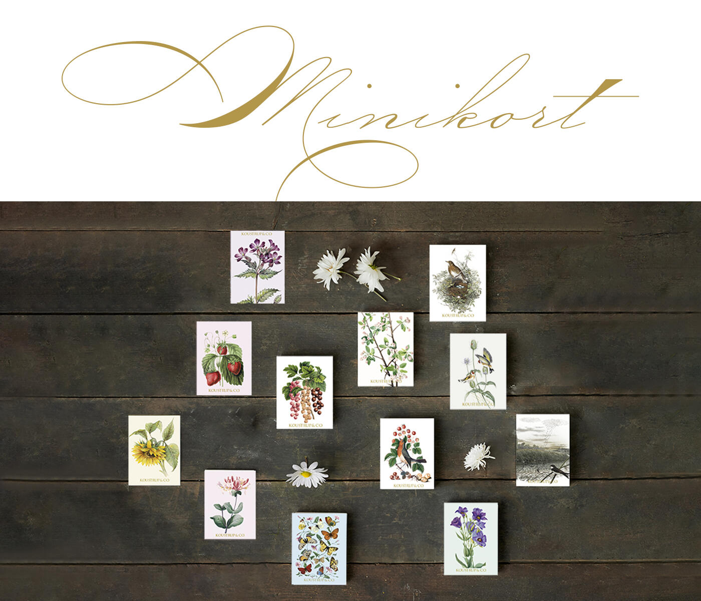 Se sortimentet af minikort med mange forskellige motiver. Minikortene er ideelle til at lægge ved en gave eller til en kort hilsen.