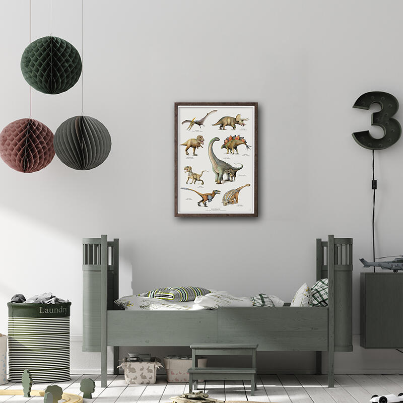 Dinosaurusposter med 8 fascinerende, gigantische wezens, zorgvuldig en heel nauwkeurig geïllustreerd door Daniel Haase. Deze reusachtige dieren wekken bij velen van alle leeftijden fascinatie en deze poster is tegelijk leerzaam, schattig en een beetje gevaarlijk.
