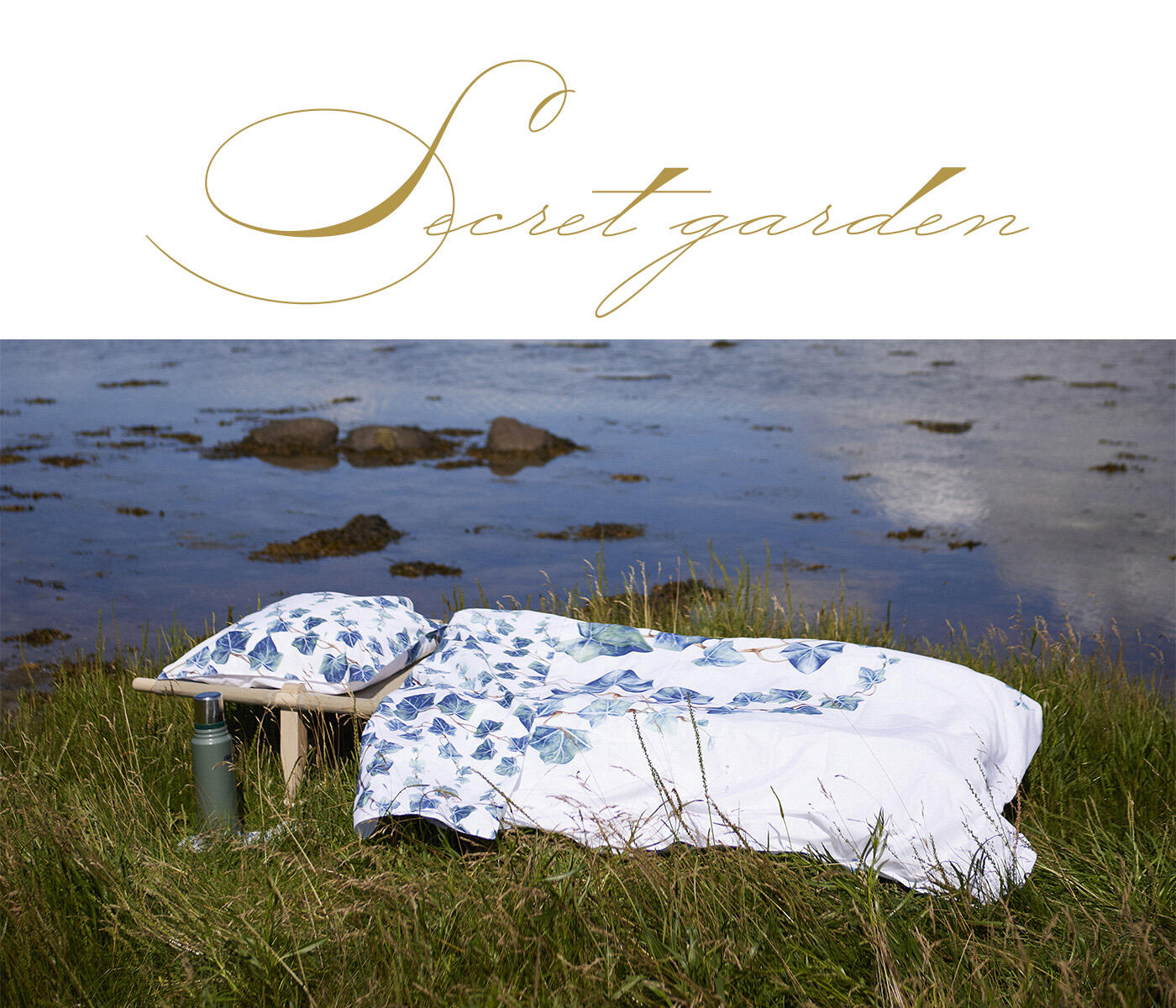 Den magiske, blågrønne og klatrende efeu plante er udgangspunktet i denne fine kollektion. Et elegant design på en tidsløs og klassisk hvid baggrund med motiv af efeu illustreret af Marianne Scheel. The Secret Garden collection indeholder produkter i stone washed hør, økologisk bomuld, miljøvenlige bakker og tallerkener og meget mere.