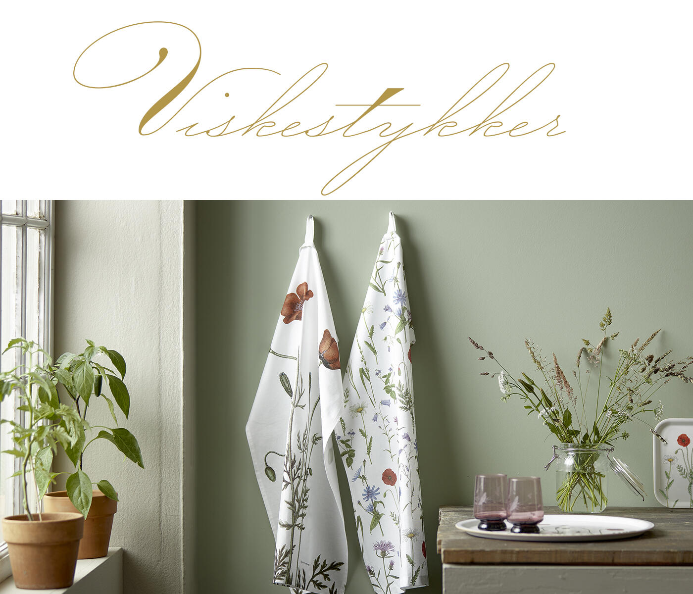 Med flotte viskestykker i økologisk bomuld, bliver selve tørringen mere stilfuld end nogensinde før. Vi fører et bredt udvalg af flotte og naturprægede viskestykker, der varierer i både motiv og farver. Motiverne tæller både viskestykker med blomster, viskestykker med planter, viskestykker med fugle, svampe, krydderurter, frugter og andet godt, som man kan finde i den smukke natur.